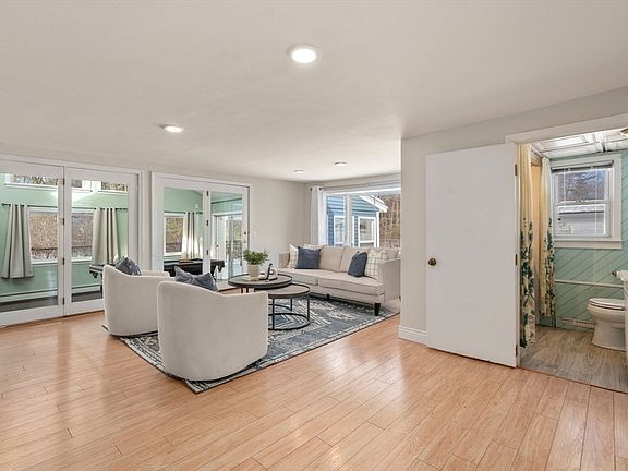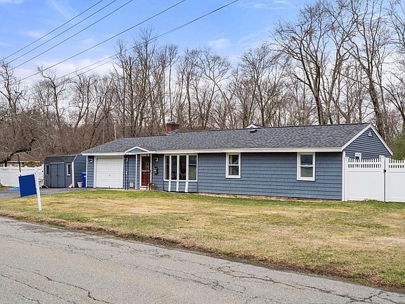 This expanded L-shaped ranch offers a versatile layout to accommodate any lifestyle. Nestled beside conservation land, this home blends privacy and neighborhood appeal with plentiful space for living, entertaining, and relaxation. Enjoy the natural light streaming through the skylight in the kitchen, which features ample cabinets and counter space. The dining, living, and vaulted-ceiling family rooms are ideal for gatherings or peaceful evenings. With four bedrooms—including a primary suite with two walls of closets—this home provides space for everyone. Step outside to find a fenced yard with a screened porch and a heated above-ground saltwater pool, creating your retreat. A new roof, fresh siding, full bath, and updated electrical panel enhance the property's value, while an oversized one-car garage adds convenience.