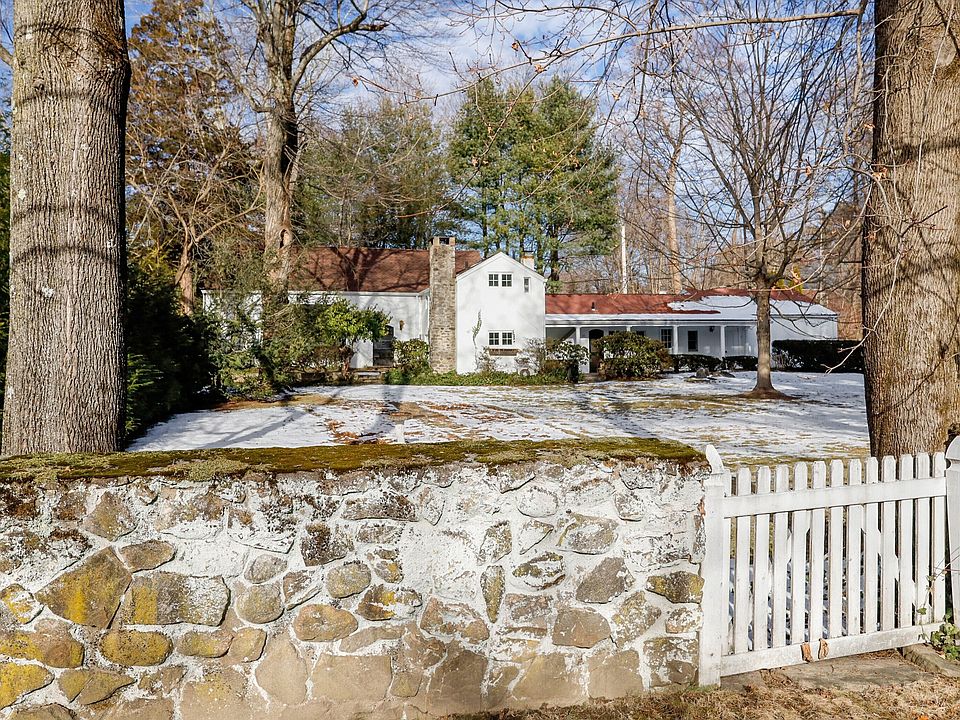 Storybook four-bedroom home exudes charm and character on a manicured .72 level acre with inviting stone courtyard offering exquisite original details. This enchanting home features a grand living room with vaulted, beamed ceiling, a wall of windows and a wood burning fireplace. The versatile floor plan provides the choice of a master suite either on the first level or upstairs which includes two additional bedrooms. Additional amenities include 3 zone ductless split air conditioning and a fireplace in the cozy office. Nestled on level landscaped grounds, this unique residence is ideally located close to schools, town, train and shopping. Move right in or Build your dream home ! Updated Survey work has been completed and new architectural drafts are available for building. Property Sold as is. Updated Survey available. Grade Report Available. Soil test for building available and No Wetlands on property. All new appliances.
