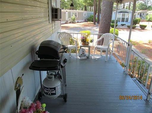 HUGE" corner" lot !! Privacy & yet centrally located. If you're looking for an updated, one-level, spacious property that has a Lg. open floor plan, this may be THE ONE !! A charming, comfortable home that has newer replacement windows throughout, 2 A/C units, "PEC" Piping installed under the home, huge 20' x 10' enclosed porch + Lg. covered deck, perfect for relaxing & or entertaining. This is a perfect home to have friends & family visit as the bedrooms are @ separate ends of the home, with the master having an ensuite full bath. You will truly enjoy the beautiful gardens in such a serene setting, especially the water feature in the park.This retirement community does not allow dogs in residence. But the central location is optimum for shopping, banking & medical appointments + easy access to the highway entrance. This park has the 2nd lowest park fee for a non-resident owned park in the local area. Come & see for yourselves. You'll LOVE it !!
