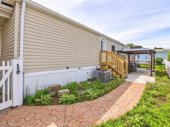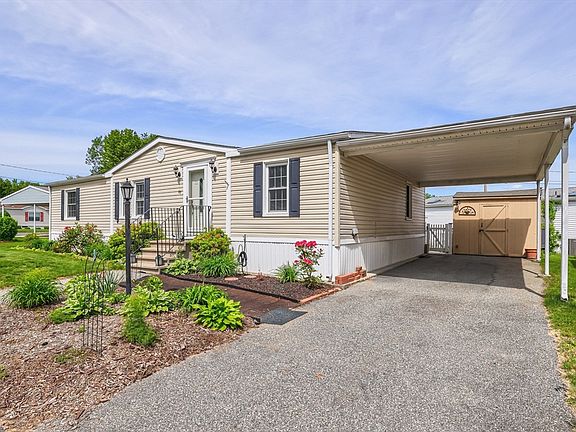 Welcome to 89 Celebration Cir. Best layout for this home with vaulted ceilings throughout. The kitchen offers a walk-in pantry, an island, & loads of cabinet space. The main suite offers a walk-in closet & walk-in shower. The guest bathroom has a skylight, tub, & shower. The fenced-in back yard sports a 10X35 patio, gazebo, & cedar pergola (2024). The carport offers coverage, a storage shed with electric, & lots of low-maintenance plantings. Updates include: New 200 amp electric panel & breakers -2024, New furnace and a/c unit-2021, recent fresh paint in some areas, professional landscaping in 2024 & a stamped concrete walkway. Lot rent includes water, sewer, taxes, street plowing, & trash pick up. Enjoy Chicopee's low electric rate.