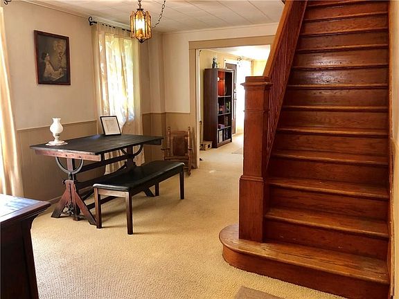 Lots of charm throughout this spacious and bright 3 bedroom home with 2 new, full bathrooms along with a 2nd floor laundry! Modern kitchen with breakfast room, over-sized living room with decorative fireplace, formal dining room, large, side foyer with closet. Beautiful natural wood staircase! Updated plumbing, hot water tank, duct work all in 2017. New, large concrete driveway! Bilco basement door. Open front and side porch and enclosed back porch! Storage shed, plus back deck! Main roof 3 years old, Metal roof 6 years old
