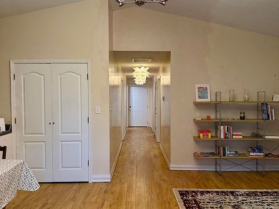 Inside, the open-concept living and dining area is highlighted by cathedral ceilings, creating an airy, inviting space that feels larger than its roughly 1,232 square feet. Natural light flows easily through the home, making it ideal for both everyday living and entertaining.
