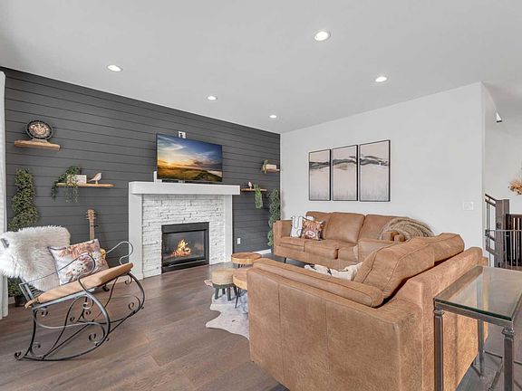 Step inside to an inviting open-concept main floor featuring engineered hardwood throughout the entire home — that's right, no carpet in this house! The gorgeous kitchen offers timeless white cabinetry with updated hardware and crown molding to the ceiling, quartz countertops, a full tile backsplash, and a custom-covered hood fan over the gas stove. There's also an in sink garburator & beverage cooler. A convenient walkthrough pantry leads to the mudroom off the heated attached garage. The bright dining area and living room are beautifully connected, highlighted by a gas fireplace with a stylish feature wall — all overlooking the large, fenced yard.