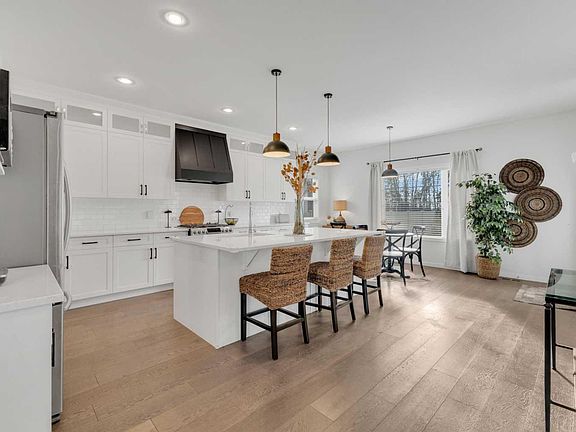Inviting open-concept main floorGorgeous kitchenQuartz countertopsFull tile backsplashConvenient walkthrough pantryHeated attached garageLarge fenced yard