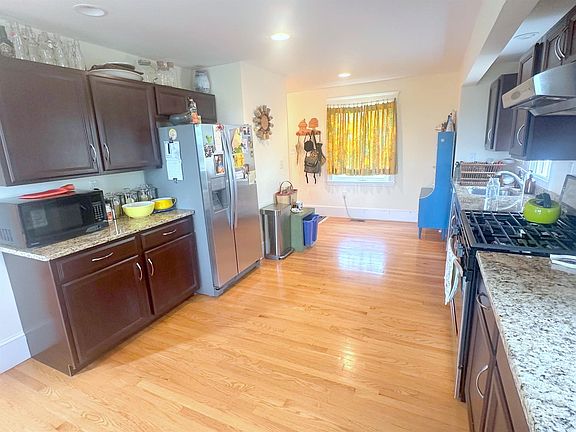 Very rare find - got renovated single family in one of Arlington's most desirable neighborhoods. Huge eat in kitchen with granite counter and stainless steel appliances. Circular flowing layout between the kitchen and gorgeous living room with fireplace and mantel. Upstairs there are two large bedroom with bathroom. One of the bedrooms is extra large with a nook that would fit a desk and has window with incredible skyline view of Boston. The other bedroom has a large double closet. A large deck extends off the the kitchen with a trellis for plantings and skyline view of Boston. The finished basement features a large common area great for an office, kids playroom, or making music. Off the common room is a bedroom sized room with ensuite bathroom and closet. The space here is extremely flexible and the neighborhood is fantastic. Skyline Park is a half block away at the end of Coolidge Rd - one of the hidden gems of the Boston Metro area with an amazing playground, green space, basketball courts, baseball field, and across the street is one of the most highly rated elementary schools in the state. Unique, wonderful property (Reference #180601)