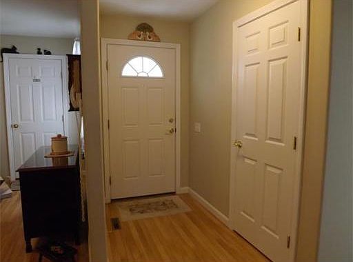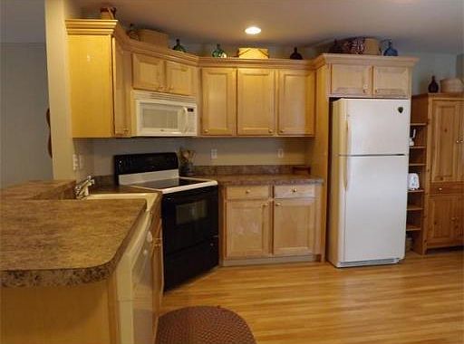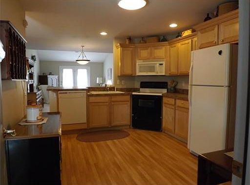This immaculate over 55 townhouse is located in Juniper Hill. This unit offers one level living with an open floor plan. Spacious living room/dining room with vaulted ceiling and french door leads to patio & backed to woods. Eat-in maple kitchen has additional built in pantry cabinet. Large master bedroom has full bath. Convenient laundry on first floor. All appliances to stay! Finished lower level bonus room is huge with fantastic laminate floor & lots of storage! Great unit!