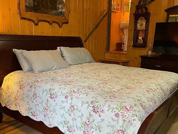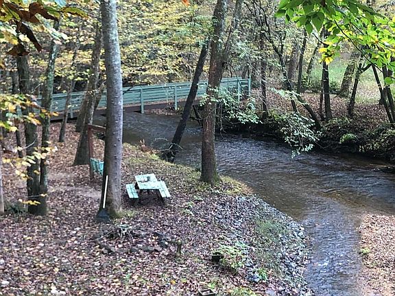 Immaculate, Furnished, Gated access 3 bedroom, 3 Bath Creek Cabin with decks galore. 2 separate parking areas. This fantastic Cabin has both Woodburning and Gas Log fireplaces. Cabin Overlooks Wide, Noisy Town Creek in Union County. Bring your fishing poles and fish in the pond! Trex decking on 3 fabulous porches and decks overlooking Town Creek with ample outdoor lighting. New gutters and downspouts. Exterior of Cabin repainted a couple of seasons ago. New instantaneous Gas Hot Water Heater installed recently. Large Farmhouse Sink with New Faucet in Kitchen with Stainless Appliances and new Quartz Countertop,. Newly updated bathrooms with walk-in showers. Guest room on lower lever has private deck facing creek. Absolutely some of the most amazing creek front property. Picnic Area and Walking Bridge in HOA maintained area. Bring your family and enjoy! Grass Cutting & Grounds Maintenance included in HOA fee. Please note that there are Short Term Rental permits available at Land Development