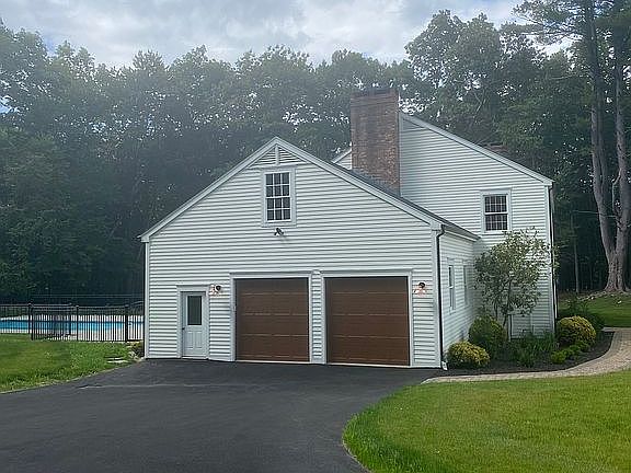 Nestled amongst the Connecticut hills, this 4-bedroom, 4-bathroom custom built colonial has been updated to bring old and new together with its classic look and added modern touches. With nearly two acres surrounded by mature trees and level lot has a wrought iron fenced inground pool and deck area for outdoor dining. Step inside the large foyer with gleaming Calacatta tile that extends into the kitchen, turned staircase, and custom built-in shelving units immediately give you an idea of how special this home is. The main level has 9-foot ceilings and beautiful hardwood floors throughout. Adjacent to the foyer is a half bathroom and custom office with floor to ceiling built in shelving units. The large family room includes a fireplace and French doors leading to the formal dining room. The kitchen layout is perfect with island and breakfast nook with large windows overlooking the pool. The bonus family room with stone fireplace and built-in wet bar is perfect for entertaining. Adjacent to this family room is a large laundry/mud room with a full bathroom. Upstairs the 4 enormous bedrooms all have hardwood floors. The master bedroom has a linen closet with entrance into an unfinished walk up attic that is prepared to be turned into an enormous walk in closet. The master bedroom also has an attached full bathroom with a soaking tub and stand up shower. A coat closet and large linen closet flank the expanded upstairs hallway along with an additional full bathroom. This home comes equipped with an attic fan for cool summer nights and central air conditioning.