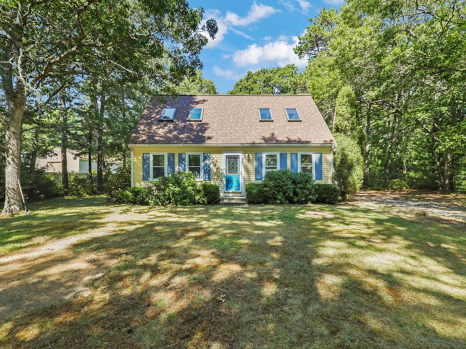 Tucked away in a quiet, natural setting, this 4-bedroom, 2-bath Cape-style home offers privacy, quality craftsmanship, and a highly desirable Mashpee location near Mashpee Commons, Popponesset, and South Cape Beach. Surrounded by protected conservation land, the property is well suited for year-round living, a seasonal retreat, or investment use. Recent updates include a new roof with transferable warranty and an approved Title V septic system. Interior features include marble, granite, porcelain tile, and hardwood flooring throughout. The light-filled eat-in kitchen opens to a spacious heated porch, ideal for everyday living or entertaining. The backyard offers a brick fire pit and ample space for future enhancements. The first floor includes two bedrooms and a full bath, while the second level features two additional bedrooms with vaulted ceilings, exposed beams, and abundant natural light. The second-floor bath offers marble flooring, a custom tile shower, and Kohler Memoir fixtures. Property being sold As Is. Sited on a 0.6-acre lot.
