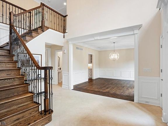 Built in 2015, this Stunning Custom Home rests on 1.5 acres of private park like property with public utilities, premier location just minutes away from Pingry school, perfect backyard for a pool! This 5 Bedroom 4.5 Bath Home features beautiful hardwood floors, extensive millwork, and an open floor plan for grand entertaining! The 1st floor has a guest suite with full bath, private office, elegant living & dining rooms, gourmet kitchen with Thermador appliances, walk in pantry, open to family room with coffered ceiling, custom bookshelves and stone fireplace. Marble master bath w/steam shower, heated floors & towel bars, Partially finished lower level has a custom wine cellar and gym! Exterior offers an outdoor retreat with sprawling paver patios, outdoor built in kitchen/grilling station, and pergola!