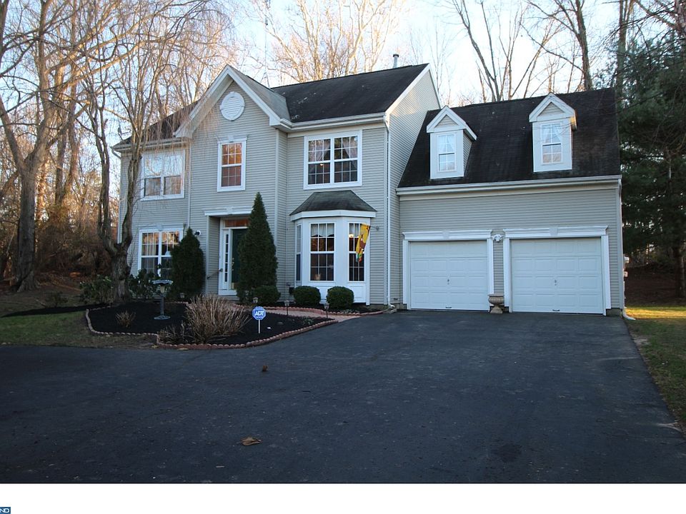 Welcome home to this beautiful 4 bedroom, 2 1/2 bath center hall colonial, with winding paver walkway. Enter this home into a two story foyer, and a bright open floor plan offering a living room, with recessed lighting, hardwood floors and french doors leading to family room. Formal dining room, with hardwood floors, bay window, chair rail and crown molding. Family room with gas fireplace, hardwood floors, ceiling fan, and french doors leading to living room. Cheerful kitchen with white cabinets and a large breakfast area, ceramic tile back splash, newer appliances, gas cooking, pantry, and sliding glass doors to deck. The main bedroom has a vaulted ceiling, walk-in closet and a beautifully remodeled main bath with newer double sink vanity, frameless shower glass doors, all newer tile with walk-in shower double shower heads. There are 3 other bedrooms, a hall bath, and a convenient laundry closet on the second floor. Full unfinished basement. There are many upgrades and a large deck 16x35 with lighting overlooks the lovely lot that is bordered on one side and along the back by wooded open space. The great location affords pleasant walks to town and has excellent access to I-95. Easy commuting to NY and Philadelphia 1/2 mile from Rt. 95.