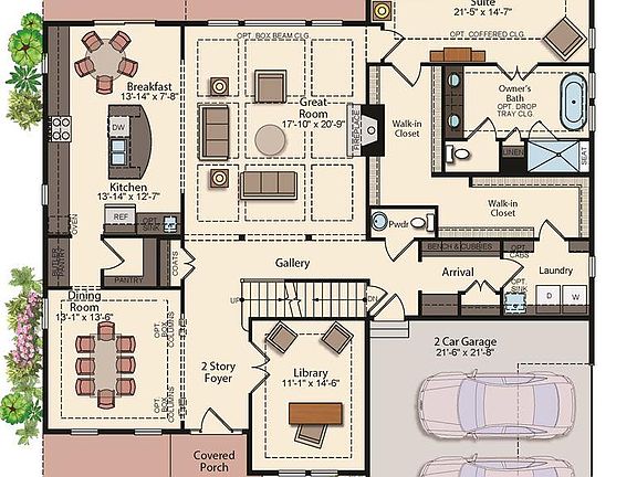 - RoomDimension: Bedroom: 13'1x12'7, Bedroom: 11'1x11'9, Bedroom: 11'1x14'6, Dining Room: 13'1x13'6, Study/Library: 11'1x14'6, Kitchen: 14'2 x12'7, Breakfast Room: 14'2x7'8, Great Room: 17'10x20'9, Master Bedroom: 21'5x14'7