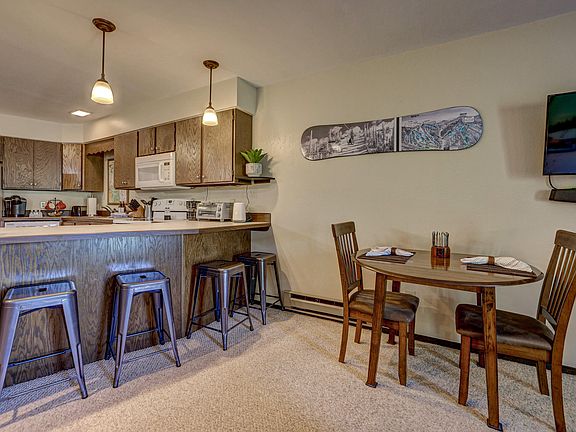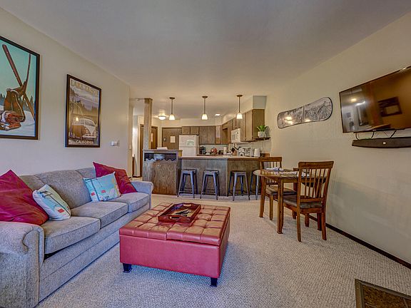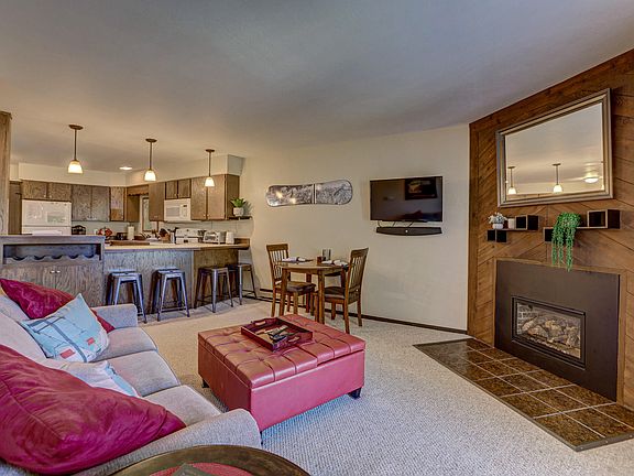 Beautiful mountain and meadow views from the large deck of this 1 bedroom, 1 bath condo. Well-appointed and centrally located, this fully furnished cabin is ready to enjoy. Conveniences include a natural gas fireplace and dedicated garage parking spot with owner's storage closet. SELLER OFFERING $5,000 TOWARDS BUYER'S CLOSING COSTS.