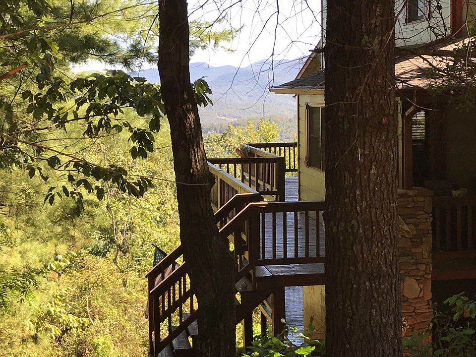 This three bedroom and four bath home sits in a beautiful area of the North Georgia mountains and has a stunning long range mountain view year round. Large home but feels very warm and cozy. Beautiful stone wood burning fireplace. Three levels of porches to enjoy the views and wildlife. Completely remodeled kitchen on the main floor with granite countertops, new cabinets, appliances, and sink. Upstairs has large loft with bath, office, huge master with its own deck, walk in closet, and master bath. Basement has kitchen, den, bath and third bedroom. Two car garage. Views! Views! Views! View of Brasstown Bald. 1.5 acres. Permitted for 2BR Septic System.