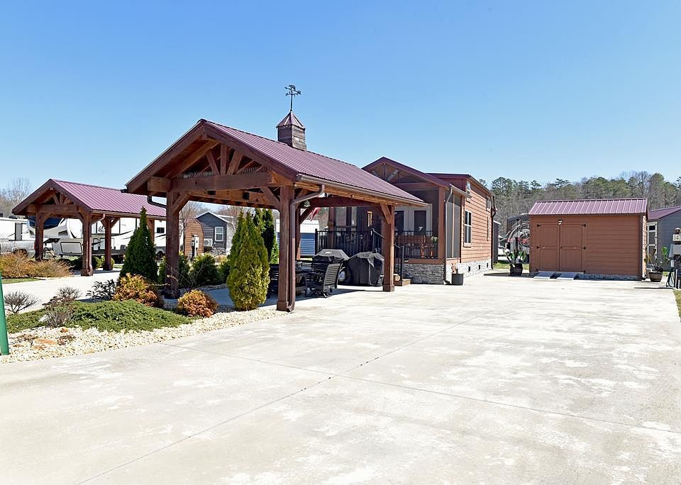Foggy Mornings or Blue Skies you have Mountain Views from this lot. Welcome to the Pristine Community of Crossing Creek RV & Spa Resort! Minutes away from Downtown Blairsville and very close to many outdoor amenities that make our area a destination. Discover the perfect blend of comfort and convenience in this meticulously maintained 2020 Stone Canyon Homes Horseshoe Model. Whether you're looking to relax full-time or enjoy a vacation retreat, this property offers everything you need and more. Oversized Concrete Driveway: Park the largest RV with ease on the oversized, level concrete driveway that includes a full RV hookup. If you are looking for even more space, CHECK OUT THE ADDITIONAL LOT listed separately right next to it with its additional hookups and alcove. Treasure the Inviting Living Space as you walk through French Doors. The generous living area with fireplace invites a cool night with the whisper of warmth in the air. As you walk past the Fully Equipped (standard size appliances) Kitchen with quartz countertops enjoy the master suite and ensuite to follow. Storage space is important so take note of the pantry. The loft will accommodate additional guests or belongings, and the Storage shed for All your adventures that await in the Mountains. CCRV provides all your resort-style living with access to a variety of amenities, including pools, hot tubs, tennis and pickleball courts, and so much more! Perfectly located, just a short drive from Blairsville and Blue Ridge, you'll have access to charming local attractions and outdoor activities. Whether you're looking for a peaceful getaway or a full-time home, this property in Crossing Creek is truly a gem. Don't miss out on the opportunity to make this beautiful home yours!