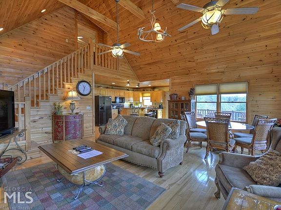 Fantastic view of the Cohutta Wilderness awaits you when you arrive at this 4 BR, 4 FB cabin offering an open floor plan, spacious kitchen w/granite countertops, large great room with "prow front" windows showcasing the mountain view, stone fireplace w/gas logs, covered deck on main level, main level master w/master bath, guest on main level, upstairs master suite w/large sitting area, upstairs master bath w/slate flooring, full-finished basement with rec room and fireplace, opens to patio with hottub and access to driveway, ample parking and level terrain. Great rental history for you investors or use as a private second home!!