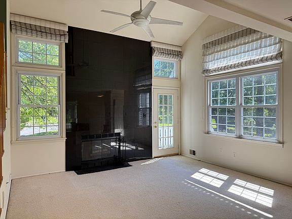 This corner unit Fieldstone model offers 1,542 square feet across two spacious levels, and double-height ceilings in the living area for an expansive and open feel. Featuring 2 bedrooms, 2 full bathrooms, and 1 half bathroom. This residence is positioned in a secluded corner of the complex and has views of peaceful rolling greens, offering the comfort of a home with the convenience of a condo. The first floor offers a sunlit living room with a wood fireplace and private balcony, dining area, kitchen, den, half bath, coat closet and storage space. A split staircase in the center of the room leads to the bedrooms. The main bedroom includes a walk in closet and ensuite bathroom. Across the hall is the second bedroom with a closet and ensuite bathroom. Washer and dryer are conveniently located between the bedrooms on the second level. Amenities include an outdoor pool, two tennis/pickleball courts, bbq grills, and ample guest parking. A great opportunity to live in the desirable Cross Creek Pointe community. Due at lease signing: 1st month rent, 1.5 month security deposit, 1 month broker fee, 350 building move in fee. No pets. Renter is responsible for water, gas, and electric. Lease term is 1 year or more. There is ample off-street parking available in the building complex (not assigned). No smoking. No pets. Available now.