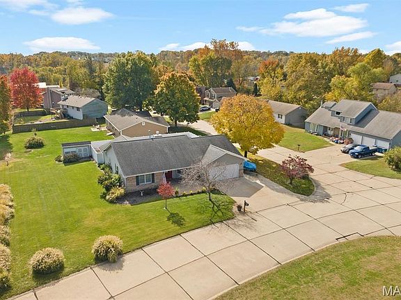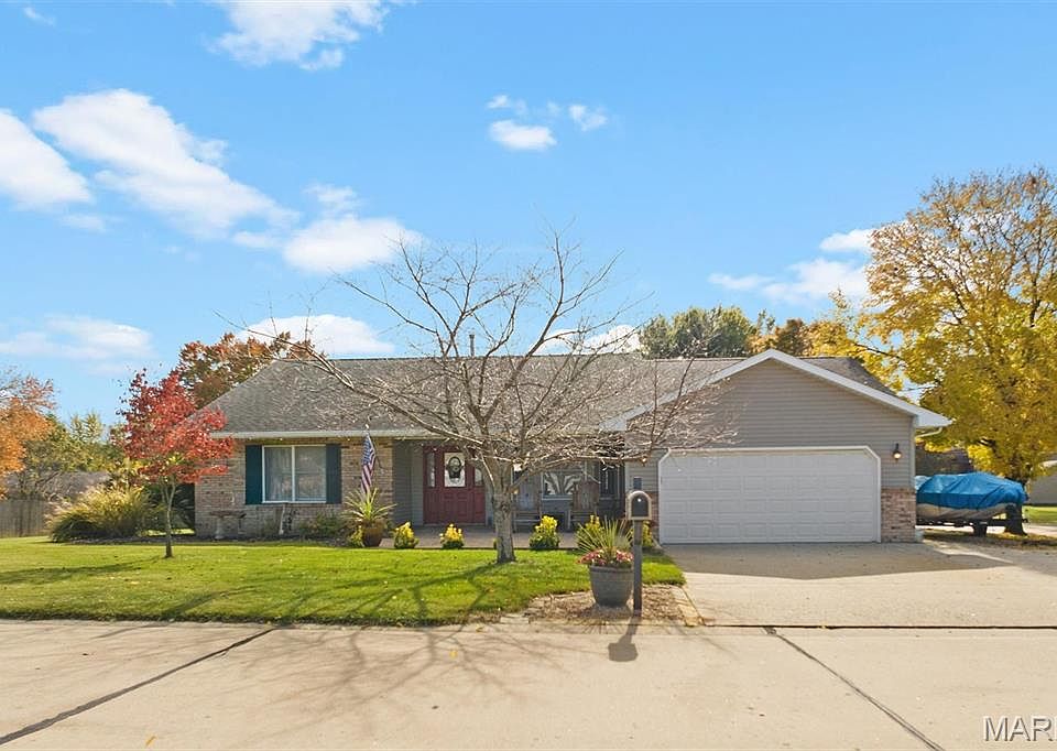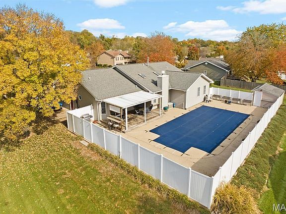 Spacious 3 bedroom, 2 bath home with an open concept living room featuring a gas fireplace and tall ceilings with skylights. Enjoy multiple dining options with a formal dining room, breakfast room, and covered back porch with sun blocking blinds. Convenient main floor laundry with added storage space. The oversized garage offers built-in shelving & dedicated workshop area. The backyard is a true retreat with an exquisite inground swimming pool, pool house with changing room or extra storage, and a vinyl fenced yard situated beautifully on a landscaped corner lot with additional parking space and extended driveway space ideal for a boat or RV. The primary bedroom includes a private ensuite bathroom, generous closet space and 2 additional bedrooms impressively sized with a guest bathroom equally generous in size. Located near Collinsville High School with quick access to Collinsville, Caseyville, Fairview Heights, and major highways including 64 & 55/70.