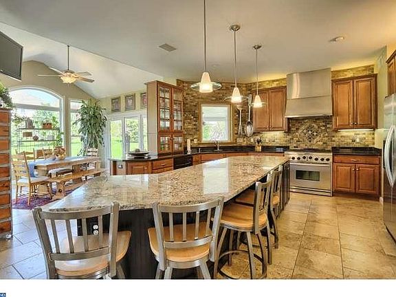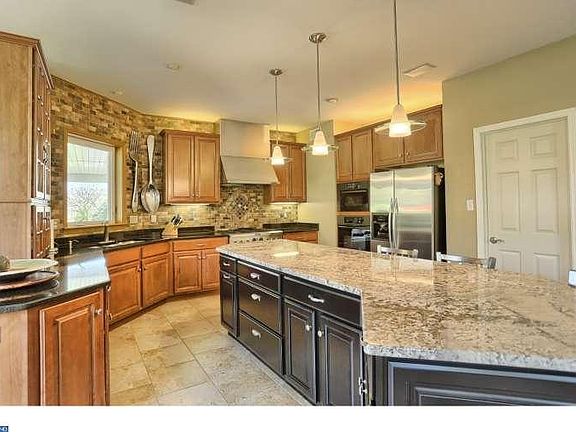 Elegant, graciously appointed, & impeccably maintained custom Tuscan contemporary home, in Berks County's premier upscale subdivision. Situated on over an acre of beautifully manicured lawn & landscaped beds, this 9 year old Glen Oley Farms home, within the Exeter Twp. School District, looks like the day it was built. The property is on a premium corner lot w/several views of the neighborhood pond, and has amazing outdoor living spaces, including a covered rear porch, open Trex deck, and paver stone patio. You are welcomed into the stunning two story foyer through the home's magnificent leaded glass and mahogany French doors, onto tasteful and neutral ceramic tile floors, that extend from the front of the home to the rear patio doors. The master suite is located on the main level and boasts a tray ceiling, neutral earth toned d~cor, with an amazing super bath w/whirlpool corner tub, his and her vanities, glass & tile walk-in shower and private water closet. The home's fantastic gourmet kitchen, is an absolute show stopper, boasting an 11' angled center island w/contrasting black cabinetry, granite counters, full tile accent wall, 6 burner gas range w/stainless hood, double oven & double under mount sink, w/walk-in pantry and a bright, adjoining morning room, overlooking the outside decks and patio. There is also a Butler's service area w/wine fridge & sink, perfect for entertaining. The dining room is spacious enough for even the largest dining suit, with crown moulding, & beautiful Brazillian cherry wood floors. There is a study on the main level, along w/a vaulted great room with an arched wall of windows and gas fireplace with floor to ceiling stone hearth. There is a princess suite on the second floor, and two additional bedrooms and 3rd full bathroom. The garage is an oversized & overheight 4 car garage, complete w/negotiable car lift and 400 amp service for the auto enthusiast. The basement is currently unfinished, but boasts nearly 2700 square feet