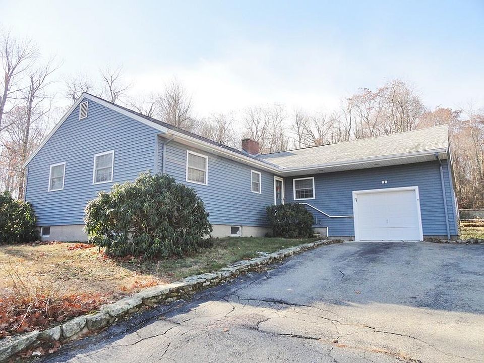 Looking for a home with privacy? This 3/4 bedroom ranch with a 1 car garage has almost 3 acres! In addition there is a living room, kitchen/eating area with a fireplace, additional fireplace in the basement. Amenities include hardwood floors and an Inground pool with pool house. Will not pass for financing. Needs electrical work, pool deck has crack parallel to pool, Garage floor cracked, stone Patio removed and no steps in its place yet for the patio door to living room it connected to. Kitchen and bathroom are usable but could be remodeled. 2nd floor room just redone. Being Sold "As Is". Basement is unfinished but large.