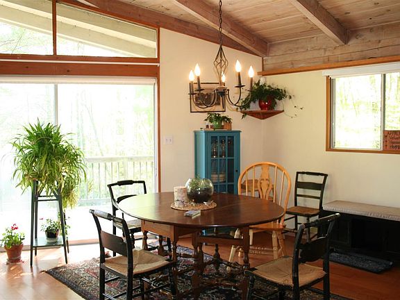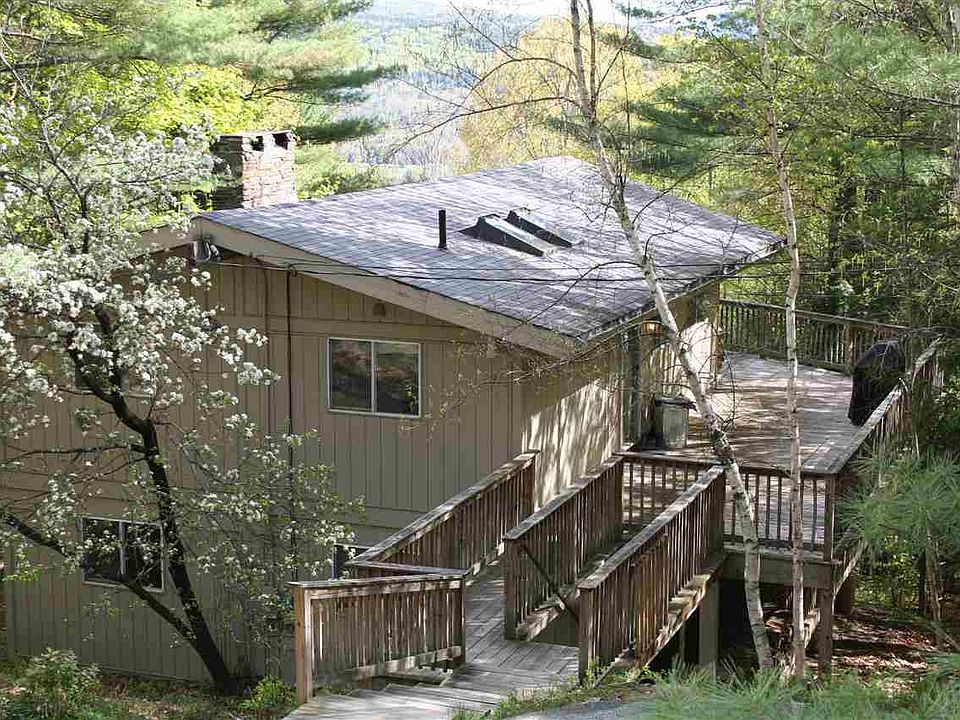 Contemporary style three bedroom / 2 bath home in Quechee Lakes. Inside you will find an updated kitchen with granite counter tops, stainless appliances and wood floors. With its open floor plan, cathedral ceilings, wood floors, wood burning fireplace, lots of windows and sliders out to the large deck, you will find the main living area a great place to entertain or spend most of your time. Off the living room, there is a master bedroom with its own private bath. On the lower level, you will find two more bedrooms, full bath, large family room with its own wood burning fireplace and sliders out to a similar size wrap around deck as the first floor. Property has southern exposure and lovely views from both the floors of the house.