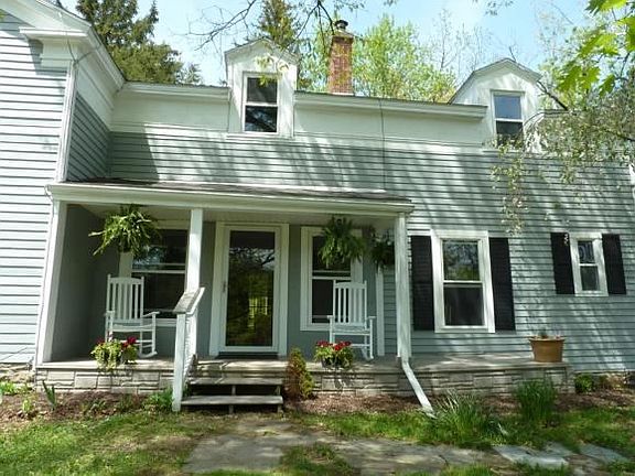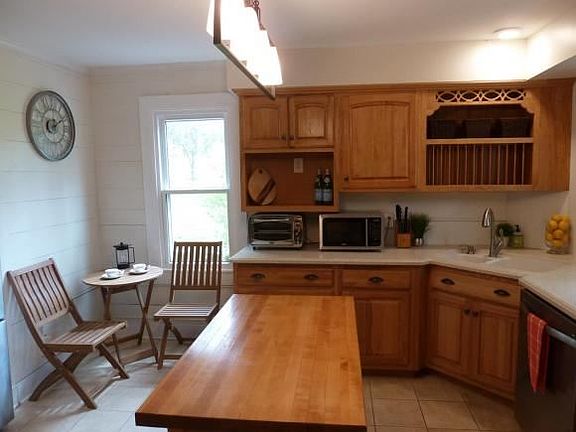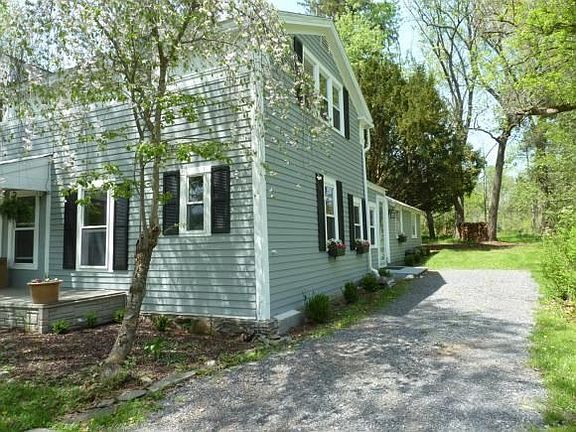 Historic home built in 1880, original wide plank floors, high ceilings in many rooms, perennial plantings, back covered patio, front covered porch. Both kitchens and bathrooms updated, windows, new boiler/hot water heater, insulation, appliances, updated electric, downstairs laundry room, new Jotul wood stove, freshly painted in the summer of 2017, new parking pull-off installed. Upstairs is used as an Air BnB rental and has a full bathroom, 2 bedrooms, private entrance, laundry room, and huge kitchen with expansive views of the beautiful 1 acre property.