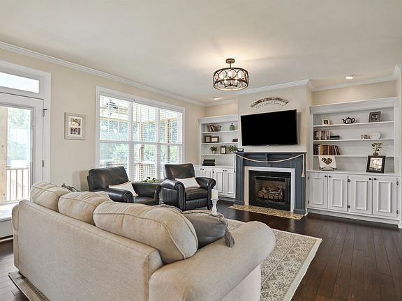 Immaculate & move in ready custom split bedroom ranch home with 2nd floor 4th bedroom/bonus room & full bath. Gleaming pecan hardwoods throughout most of 1st floor. Spacious family room includes built-in bookshelves & gas log fireplace. Separate dining area. Kitchen offers custom cabinets, granite tops, center island, subway tile backsplash & black stainless appliances. Upgraded lighting & plumbing fixtures. 1st floor office with french doors. Primary suite features walk in closet, new quartz top dual vanity, soaking tub with separate shower. Large mudroom/laundry room with custom built ins. 2 car garage with separate storage area. New roof 2018. Septic cleaned 2022. 300+ sq ft screen porch. Enjoy your sparkling pool on those great summer NC days. Huge backyard. Located on a quiet cul-de-sac.
