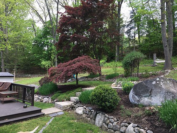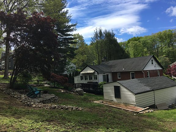A great starter.Open and offers a bright and offers spacious living space.The kitchen and main bath recently updated. The family room has a wood burning stove and sliders to a large deck and beautiful parklike property. 200 amp electrical service. Full basement with a vinyl floored playroom another full bath and a laundry. area and utility/storage room.Septic tanknew in 2016 Detached garage as is.