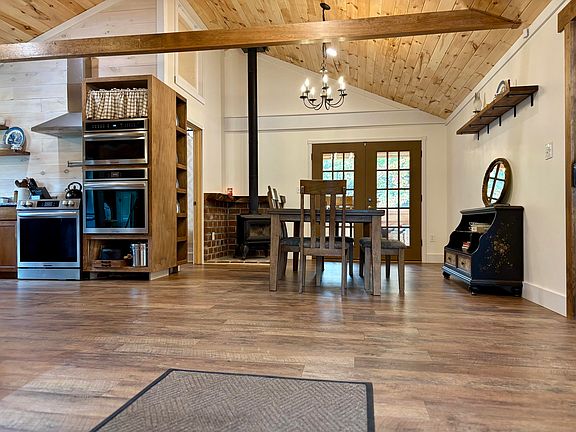 Additional features add convenience and comfort, including a propane on-demand water heater and a hardwired 100-amp service, ready for a whole-house generator. All appliances, including the Electrolux washer and dryer and both woodstoves, are included.