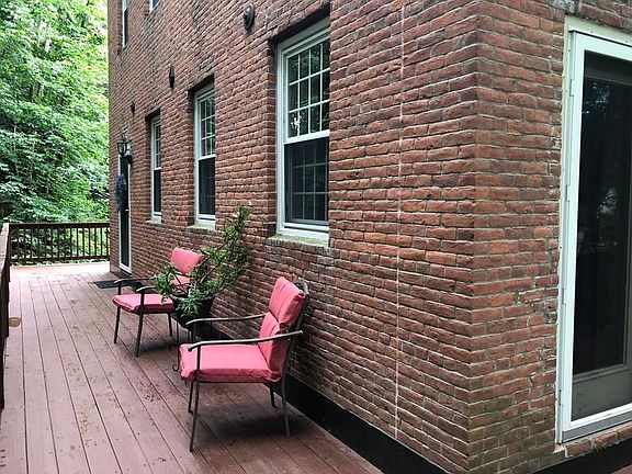 An enchanting END unit condo nestled in the town of Uxbridge. Set within a historical brick mill building, this residence gives a unique living experience across four levels. The main living level offers a bright white kitchen, complete with soft-closing cabinets and drawers, quartz countertops, and stainless-steel appliances. The gleaming hardwood floors and post and beam ceiling create a cozy atmosphere in the dining and living area. The primary bedroom provides a comfortable space with double closets, while the secondary bedroom features a built-in storage nook and separate full closet. A full-size bathroom with double sinks and ample natural light completes this level. The third floor offers an open loft floor plan, ideal for use as a third bedroom, home office, or flex space. The heated finished basement includes a laundry area and generous storage options. Outside, a 100ft. deck provides a peaceful retreat with scenic views of the Mumford River. Discover this hidden gem!