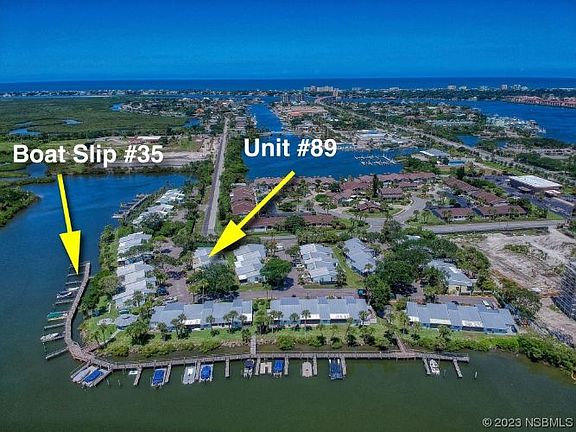 RIVERFRONT LIVING!! This is the "Best of Both Worlds" close to the beach and action while enjoying a secluded natural setting. Situated on the NORTH CAUSEWAY between Canal Street and famous Flagler Ave-with charming shops, restaurants, and Farmer's Market-it's the PERFECT LOCATION for a walk, bike, paddle, golf cart or boat ride to the best New Smyrna Beach has to offer. Tucked away on the Indian River with a boardwalk to view dolphins, manatee, fish and tropical birds. Spectacular sunsets make the boardwalk, gazebo and firepit popular spots for happy hour. From the front door to feet in the sand, the beach is about a mile away. Step inside a spacious, light-filled, single story condo with soaring ceilings and windows that enjoy sunny views and tropical foliage. Features of this 2 bedroom, 2 bath unit include a renovated European kitchen with quartz countertops, upgraded stainless steel appliances, soft close drawers and cabinets, updated dual sink master vanity and vinyl plank flooring. Bring the outside in with 3 glass sliders leading to a HUGE OUTDOOR PATIO. Enjoy WATER PEEKS from the LR and one bedroom. All this comes with a PRIVATE BOAT SLIP to enjoy on Day One-no wait list like so many other places. Walk out the front door to your assigned boat slip, just a stone'''s throw away. AMAZING PRICE for an NSB condo with slip and 1, 440 square feet of living space (incl. private sun-drenched outdoor patio). Buy now and rent the villa until you'''re ready to move!