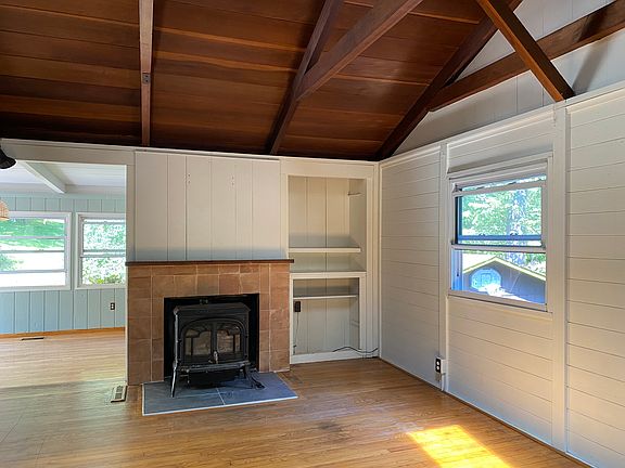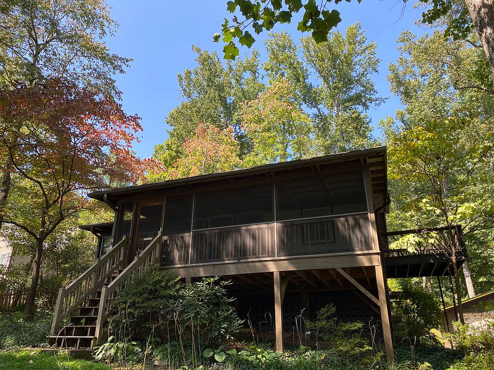 Full of character and boasting a unique layout, this house makes it feel like you are living in the treetops. The house has an open layout with great natural light & huge vaulted ceilings with beautiful redwood beams. Master bedroom on the main level with custom master bathroom (just completed in 2025). The main level also boasts 2 bonus rooms that were previously both used as offices, but one of them would also be a great nursery or kid's bedroom. There is also a hallway 1/2 bathroom. This kitchen is great for those who love to cook (gas range, stainless steel appliances, part granite countertops and part butcher block). There is also a bar area & wine rack. Kitchen opens to the living area. Living room focal point is the wood stove and terracotta tiling, the perfect spot to cozy up on cold winter nights. Step down from the kitchen/living room into the dining area. From the dining area, you can access the back deck & yard and also access the stairs to the downstairs level with second large bedroom, full bathroom, and laundry room. Perhaps the best part of the house is the massive, multi-level screened in porch on the front of the house, perfect for watching the world go by. Convenient location in the Royal Pines neighborhood in Arden, less than 10 minutes from the Airport and 5 minutes to Ingles/Whole Foods/Publix & so many restaurants and businesses in South Asheville. Pets ok! Fenced backyard, firepit, gardening areas! Garage with space for 1 car & storage space that will be shared with the landlord. The house would be ideal for friends that work remotely, or perhaps a couple with a small child. We are seeking tenants who will treat the home as if it is their own and appreciate its unique spaces and outdoor areas. - Prefer to do a 12 month lease, but willing to do a 6 or 9 month - Absolutely no smoking allowed inside the home - Driveway parking for multiple cars & 1 car can also fit in the garage - Tenant responsible for all utilities - Landlord responsible for mowing grass, tenant responsible for all other yard upkeep (negotiable) -Must pass background check, credit check, and provide 2 references