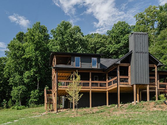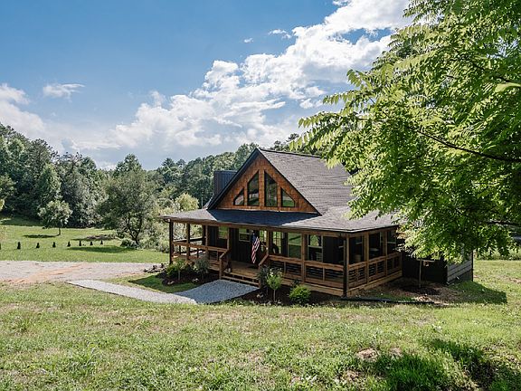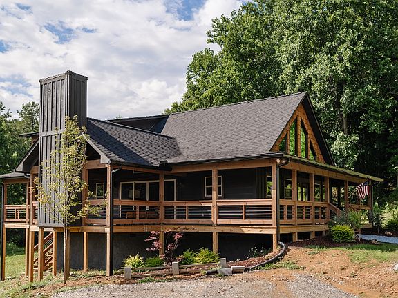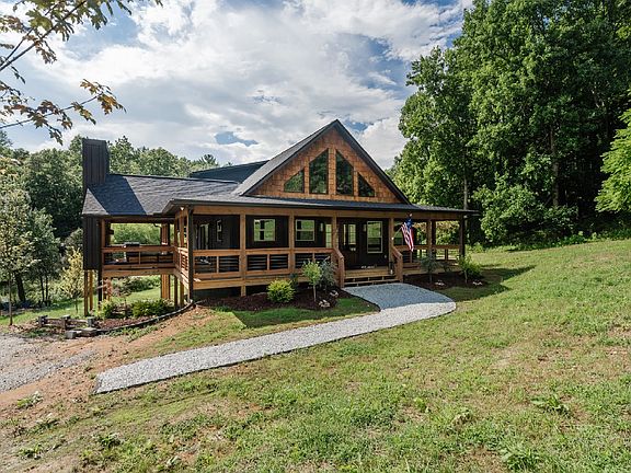 Stunning new construction overlooks lush meadow, large fire pit entertaining space, and a babbling creek. Within a highly sought-after gated community and minutes to Downtown Blue Ridge, Lake Blue Ridge, and many hiking and biking trails. 2 full suites plus an additional third bedroom loft. Three full spa-style bathrooms w/ walk-in tile, hardwood floors throughout, soaring cathedral ceilings, stacked stone F/P inside and out, and adorable dining room. Wraparound decks make this home perfect for entertaining. For full time, second home or a rental investment, this adorable rustic craftsman blend home won't last long!