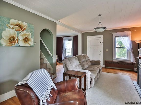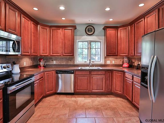 A place to call home! Bigger than it looks bungalow set on a huge 1/2 acre lot in desireable North Colonie Schools/Blue Creek Elementary school area. Offering a large updated kitchen with stainless appliances, 42" maple cabinets, and a big eat in breakfast area. Living room with fireplace and formal dining room. Harwood floors throughout. 1st floor bedroom and bathroom. Huge, level fenced backyard with screen porch, in-ground pool with stamped concrete patio and wooden playset.