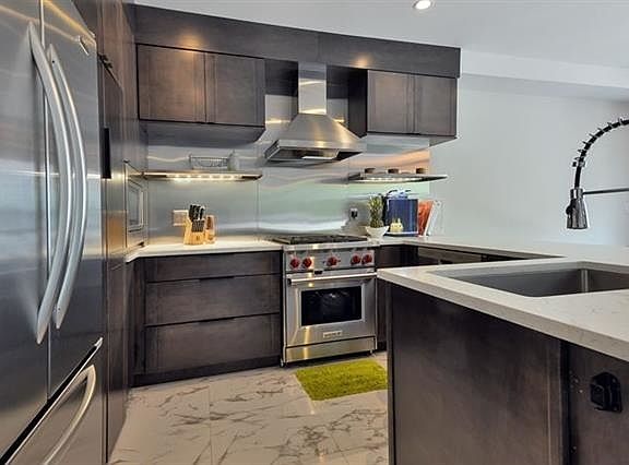 This premier home at 89 Jefferson Street is unlike most homes available in Hoboken, offering a huge amount of indoor space, a private terrace and huge private, landscaped backyard! With true floor to ceiling windows in all rooms, this gorgeous unit comes with a premium full-size parking spot with extra space for a storage, with a large elevator leading to just 2 units on the floor. The state of the art kitchen features a a professional grade Wolf stove with exterior venting, walk in pantry, wine fridge, custom cabinetry, stone counters & large dining area and concrete color quartz countertops with mocha wood cabinetry. Abundant closet space throughout unit. Massive master bedroom suite with walk in closet and seamless glass shower. Premium washer/dryer, solid wood doors, solid hardwood floors, dimmer lighting. Excellent downtown location for the NYC PATH commuter, off 1st Street shops, local conveniences at the corner, close to community parks.