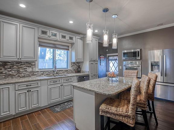 - Kit Dscrp: Pantry, Countertops - Stone/Granite/Solid, Cabinets - Upgraded, Flooring - Stone/Ceramic Tile, Kitchen Island, Stainless Steel Appliances, Recessed Lighting, Remodeled, Exterior Access