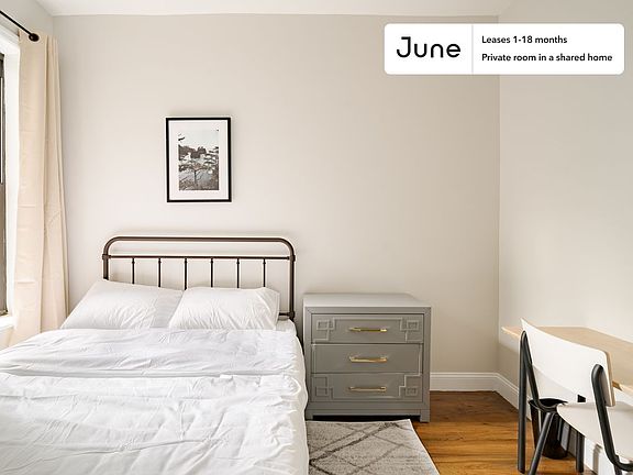 PLEASE NOTE: This is a private room in a shared apartment. You will have your own bedroom and shared common areas (kitchen, bathroom, etc.) with other residents. Full bedroom in a 4 bedroom / 1 bathroom apartment! This Full room in Crown Heights is available on a 12 month lease or a flexible short term (31 to 364 days) lease. You pick your custom start and end date. Monthly rent rate is determined by furnishing preference, move-in date and move-out date. Speak to a June representative for recommendations on the best stay duration for the lowest rate. Amenities of this home: Guarantors Allowed, Street parking - City permit required, Laundry - Paid separately (in building), Dishwasher, Furnished Common Areas, Wi-Fi - Paid separately (High-Speed), Wall-Mounted TV, Hardwood Flooring, Microwave, Oven, Refrigerator, also, this unit is conveniently located, several local parks, restaurants and bars are just minutes away. About June Homes: Welcome to the easiest rental experience of your life. Rent furnished or unfurnished apartments on a 12 month lease or a flexible short term (31 to 364 days). As a resident, you'll have access to 24/7 support and monthly cleanings of the home's shared spaces. Sign up now to apply online for your next home with June. Brokers welcome! Contact us for more details. Use this listing ID when speaking to June team: #1382 C