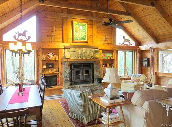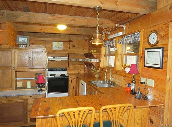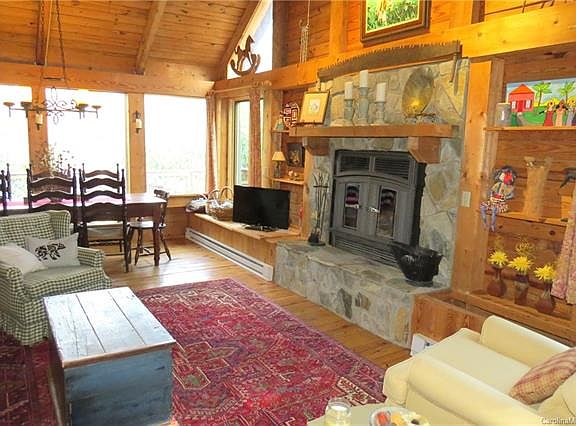 This is the consummate mountain cabin-built Appalachian style with lots of rustic charm! Wood paneled walls and ceilings with beautiful pine wide plank floors and a stone fireplace with insert. This is truly a mountain getaway to enjoy the natural beauty of the mountains in a private setting. The property has views of a pond, fronts a creek, and is only a short stroll from the beautiful Slick Rock lake, approximately 6 or 7 acres and ideal for canoeing, swimming, and fishing. Downstairs has a guest suite with sitting/TV area, dining area, refrigerator, and sink cabinet. Also downstairs has additional private bedroom and laundry facilities. You and your guests can each enjoy your privacy. This cabin is part of the Slick Rock community which is comprised of over 500 acres and owners committed to preserving its natural beauty.