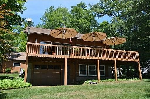 Only the water and State land beyond as your waterfront view! This very private setting with western sunset views provides for the perfect waterfront property. A licensed dock complete with a boat lift compliments this beautiful setting. From the glass wall of the house you find yourself in total relaxation. All this with a new septic system and a detached, oversized 2 car garage with finishable living space above. Come and start your lake life without compromise.
