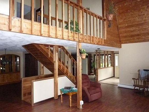 Outstanding Contemporary on 5 Private,Mostly Wooded Acres.Living Room with Pellet Stove has Soaring 3 sty Cathedral Ceilings.Cook's Kitchen has center island & Roomy pantry.Adjoining Dining area leads to Greenhouse!Large Master Suite w/bath,Walk-in closet&Fireplace.Such Interesting Space!Light & Bright!Cozy 3rd sty Loft with Awesome Views & Evening Sunsets.5 Acres to play on then in the Hot Tub!