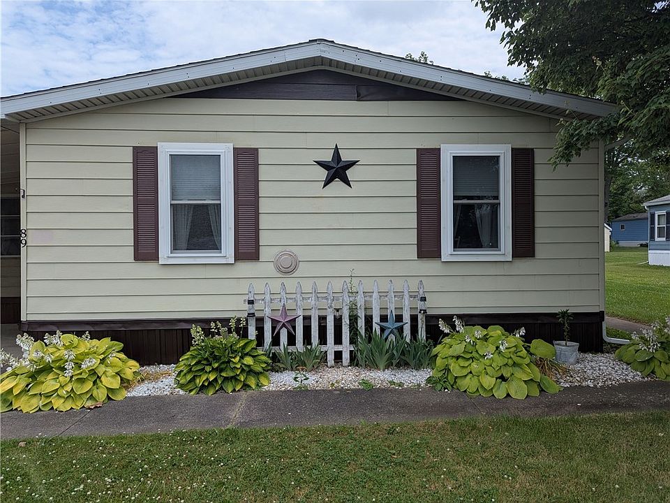 Ones like these don't come along very often! This very well cared for home has a 3 season room, master suite, first floor laundry, large living room, nice sized shed for extra storage and is located in a 55+ mobile home park! The generator was installed in 2024 so no worries if the power goes out! The home had new gutters in 2020 and a forced air heating/cooling unit installed in 2018. The appliances will stay with the property all you need to do is bring your things and make it your own!! Park approval will be required within 48 hours of your offer being accepted. Delayed negotiations will begin on Wednesday July 16th @ 11:00 am.