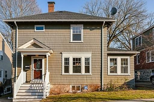 Charming 1920's hip roof colonial will have you at "hello". Light, bright, and sunny with beautiful hardwood floors throughout. Relax in the gracious living room with wood-burning fireplace and built-in speakers in the ceiling. Formal dining room opens to cabinet-packed kitchen. Bonus first floor office for working remotely. Lovely all year round sunroom with sliders opens onto the deck. Updated half bath on first floor with skylight. Renovated full tiled bath on the second floor. Fujitsu mini-split ductless central air system with two compressors, even in the basement! Dropdown stairway to attic. Updated electrical, 200 amps, circuit breakers. Newer replacement windows in the basement. Young roof, one layer approximately 4 years. Storage shed in the yard. Great location off of LaGrange near West Roxbury Pkwy. Convenient to shopping, T, and more. Welcome Home!