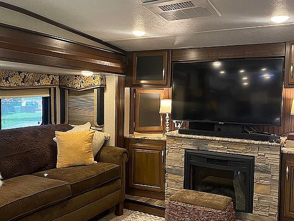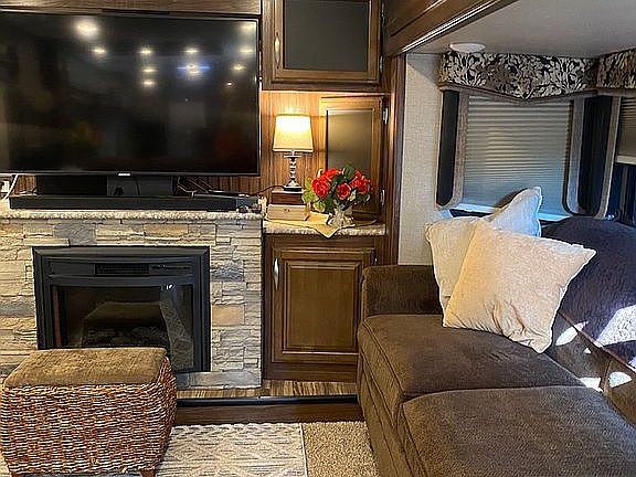40 Ft Montana 5th wheel. Skirted with 4 slide outs. 2 storage areas and lots of storage bins in the RV. Beautiful new residential furniture and Fridge/ freezer. It has a mini split Mitsubishi air conditioner/ heater. A fireplace. Many extras. Top of the line Montana package.