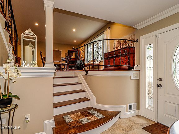 Welcome to this meticulously maintained home, located in one of Lincroft's most desirable neighborhoods. This split level home features gleaming hardwood floors and dimmable recessed lighting throughout, a spacious living room and formal dining room, and a cozy wood burning fireplace that creates an inviting ambiance all year round. The layout offers ideal separation of living and private spaces, with generous bedrooms and updated baths. Step into your huge, fully fenced backyard - an entertainer's dream and private oasis for family fun, pets, or peaceful evenings under the stars. For hosting or relaxing, this home delivers comfort, charm, and convenience, all within minutes of top rated schools, parks, shopping, GSP and NYC transportation. A must see! Won't last!