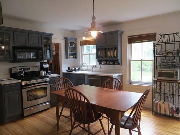 LUNENBURG CENTER GEM! Charming, well loved antique farmhouse with tasteful updates, awaits its new owners. Its 7 rooms include 3 or 4 bedrooms, 1.5 baths, eat-in cabinet kitchen with pantry, open formal living and dining rooms, plus a serene and beautiful screened porch. Chimney for potential wood/pellet stove off living room. Spacious 1.5 acre lot with partially fenced back yard, stone foundation of original barn, room for gardens, animals, outdoor enjoyment. Walk to band concerts, library, Center stores. All appliances convey, including new refrigerator. Electric service just updated (1/16). A home to cherish!