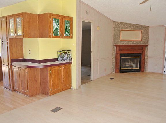SPACIOUS 3/2 DOUBLEWIDE. Split floor plan, vaulted ceilings, wood burning fireplace, big dining area, and an eat in kitchen with bay window. Does need some attention but would make a great started home or rental investment. Has a nice flat yard in front and back, great for kids or a garden. In front has a waterfall feature, and in back has a covered porch, and shed.