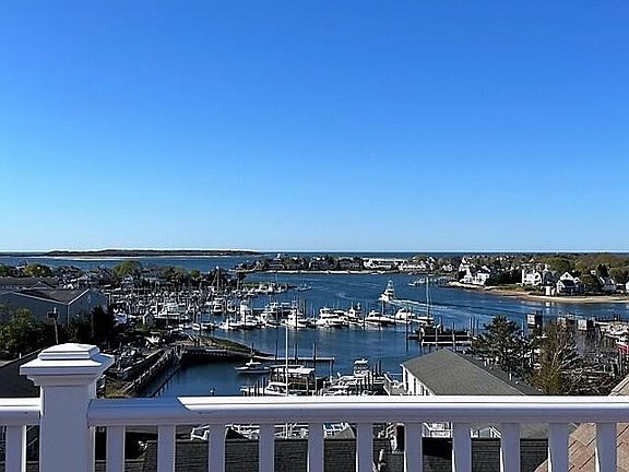 Harbor Views from living room, bedroom and common deck! One level condo with a corner location for added light. Fabulous location with the hospital, harbor, town and beaches close by. The common roof top deck is amazing, offering a place to lounge in the sun, sip a cocktail or cook your dinner on the outdoor kitchen grills, all while viewing the harbor activity. Perfect location to watch the fireworks too! An open design from the foyer to kitchen/dining and into the living room, all with wood floors. The kitchen has SS appliances, granite counters and an island with a breakfast bar. Living room with crown molding and a gas fireplace. Primary bedroom has a slider to a balcony with views and en suite with an oversized shower. Second bedroom has three double closets, all with custom built-ins and a full bath. Large utility/laundry/storage rm. Secure building access into an attractive entrance foyer & an elevator. Plenty of parking and owners own a garage that will be offered for sale separately. Measurements are approx, buyer encouraged to verify at the property. Taxes vary by use, buyer to verify with town