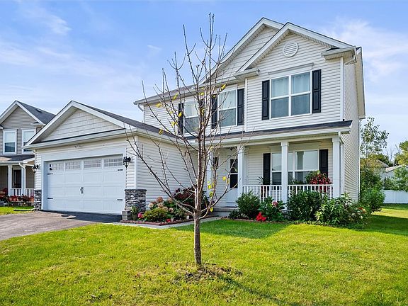 You won’t want to miss this 1,820 sq. ft. Colonial nestled in Greece, boasting curb appeal & a stone-accented front garage. The open front porch invites you to relax & enjoy the peaceful surroundings. Upon entering, an inviting foyer with elegant ceramic tile leads to a versatile office/den that can easily transform into a formal living room or cozy reading nook. The open-concept living room flows seamlessly into the well-appointed kitchen, featuring ample counter space & a sunlit eat-in dining area, perfect for family meals or entertaining guests. For added convenience, the first floor includes a laundry room & a half bath. Upstairs, you’ll find 4 generously sized bedrooms & 2 full baths, including a primary suite. The basement features an egress window, providing endless possibilities for customization into a home gym or additional living space. Step outside to a beautiful deck overlooking a spacious backyard that’s ready for your creative touch—whether you envision a garden, outdoor lounge, or play area. This home is waiting for you to make it your own!