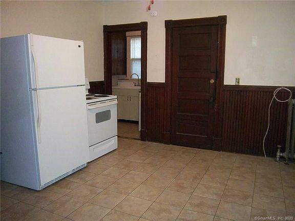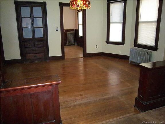 Spacious first floor unit in a two family dwelling, with a lot of original character. Situated on a nice corner lot. 2 bedrooms, 1 full bath. Eat in kitchen with a refrigerator and stove, open to the dining room and living room. Shared basement with washer and dryer hookups. Covered front porch. Lots of windows and nice hardwood flooring. Well maintained. No pets. Application required; good references and credit.