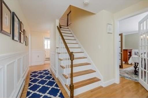 PRACTICALLY PERFECT.......this adorable Gambrel has the perfect floor plan! Walk into the foyer and be invited into the front to back living room with custom built in book case and crown molding. Welcome your dinner guests into the warm and inviting dining room with bead board and crown molding with french doors that lead into a large and open kitchen with island and LOTS of cabinets as well as a light and bright eat in area with vaulted ceiling, skylights and all windows overlooking the backyard! There are 4 generous sized bedrooms on the second floor! Finished lower level !! The home boasts hardwood and tile flooring, central vacuum, newer water heater, maintenance free decking, fenced-in in-ground pool with mesh pool cover and much more! FABULOUS place to call your own!